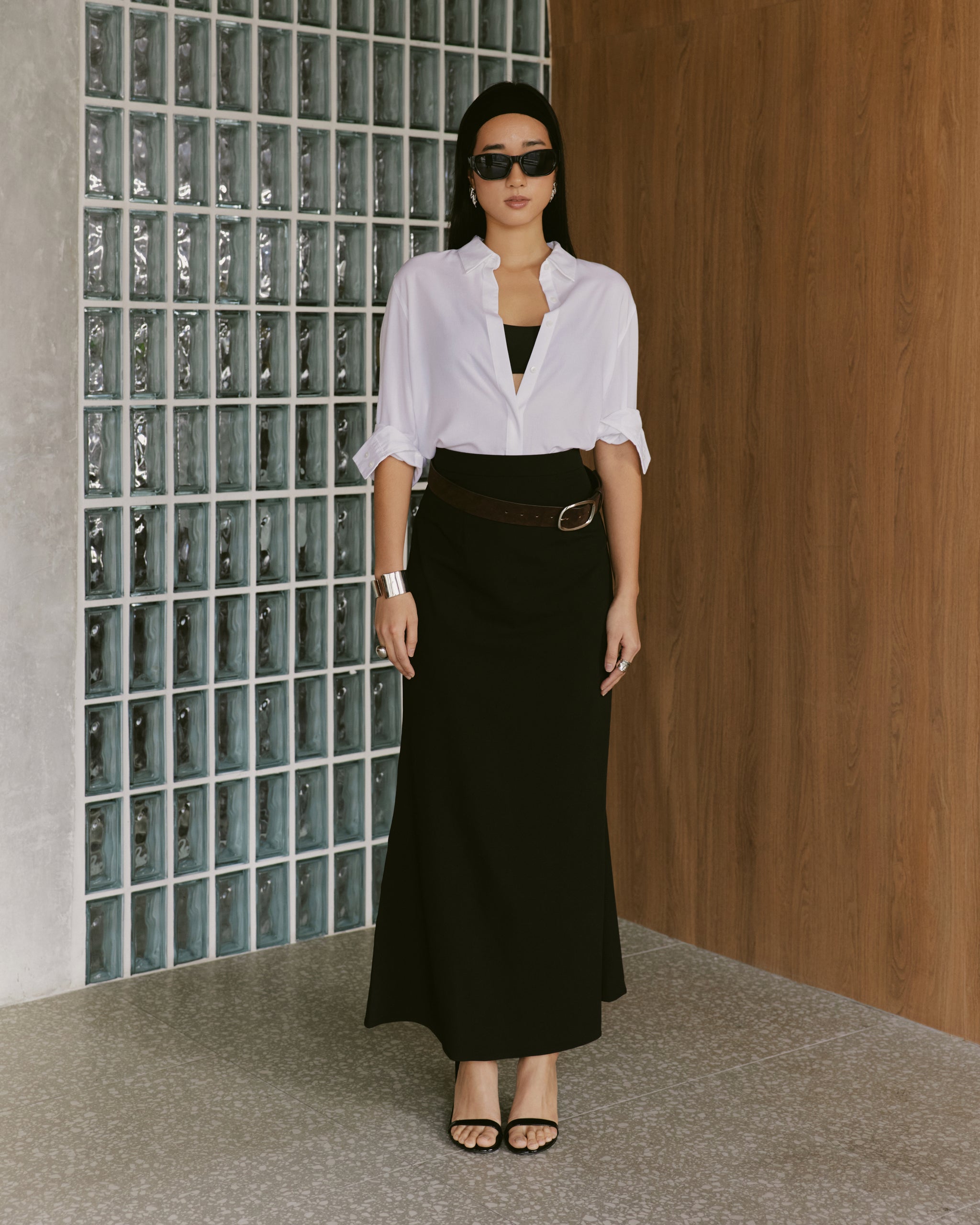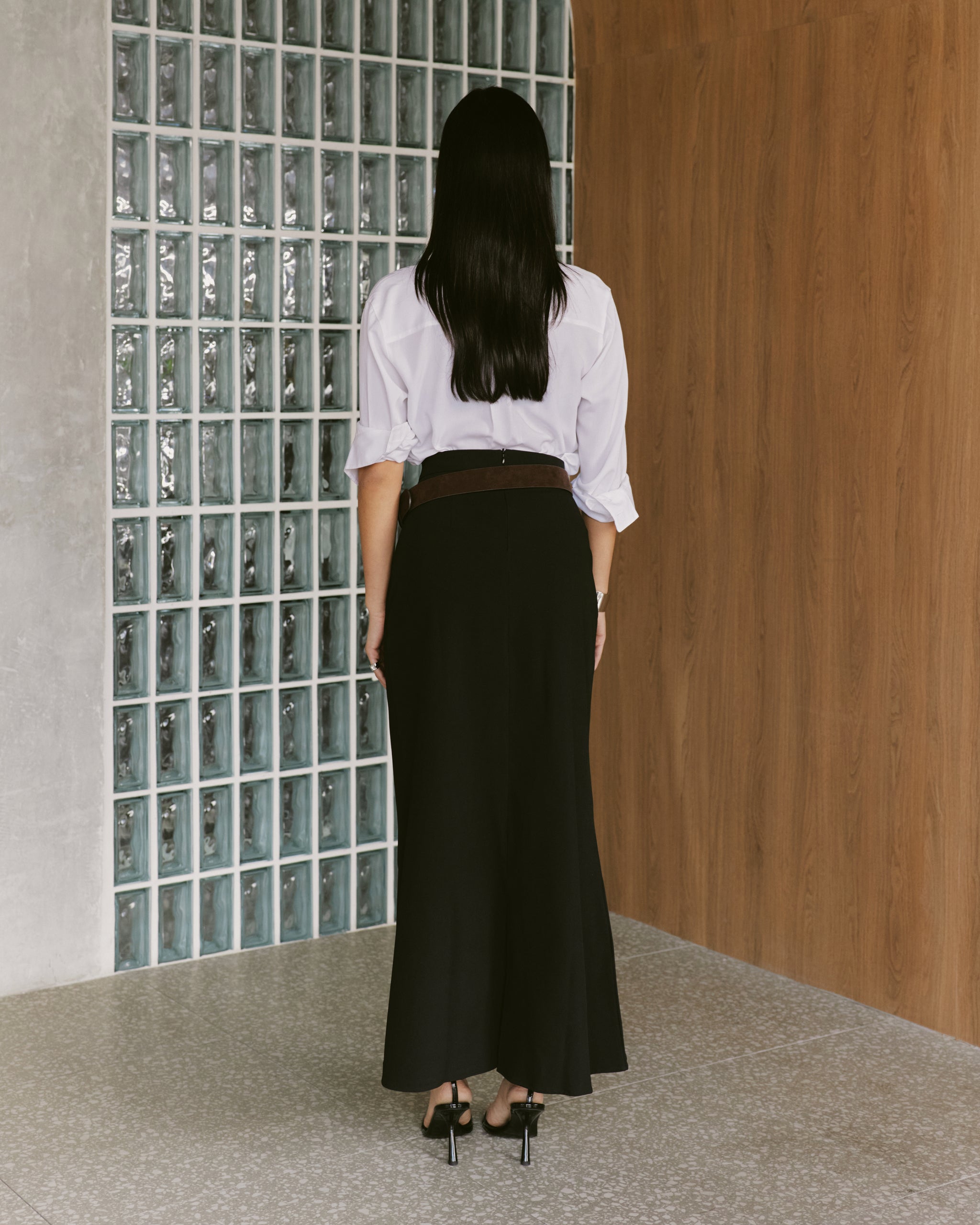The Margo Skirt is modern refinement in its purest form. Cut in a clean, elongated silhouette, this full-length skirt embraces minimalism with intention, skimming the hips before gently flaring toward the hem for a soft, feminine line. Its structured waistband offers subtle definition, while the fluid drape creates movement with every step. Versatile enough for crisp shirting or delicate evening tops, the Margo Skirt brings understated sophistication to any wardrobe.