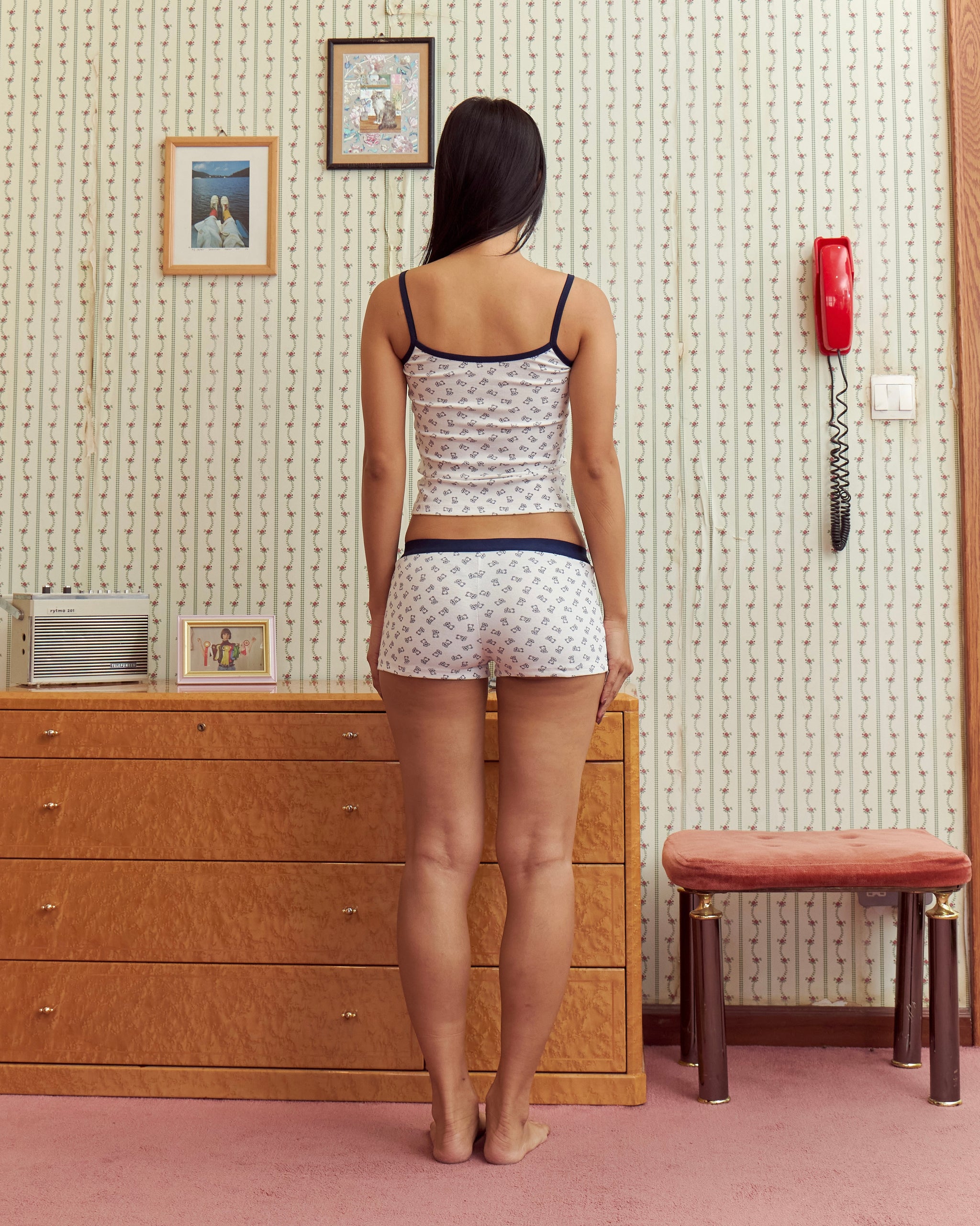 The Mollie Set is sweet comfort with a whisper of nostalgia. Designed in a lightweight, breathable fabric adorned with a delicate all-over print, this two-piece feels like slow mornings and handwritten love notes. The camisole features slender straps and a gentle scoop neckline, while the matching shorts sit comfortably at the waist with a soft elastic band. Effortless and endearing, Mollie is made for lounging, unwinding, and staying in just a little longer.